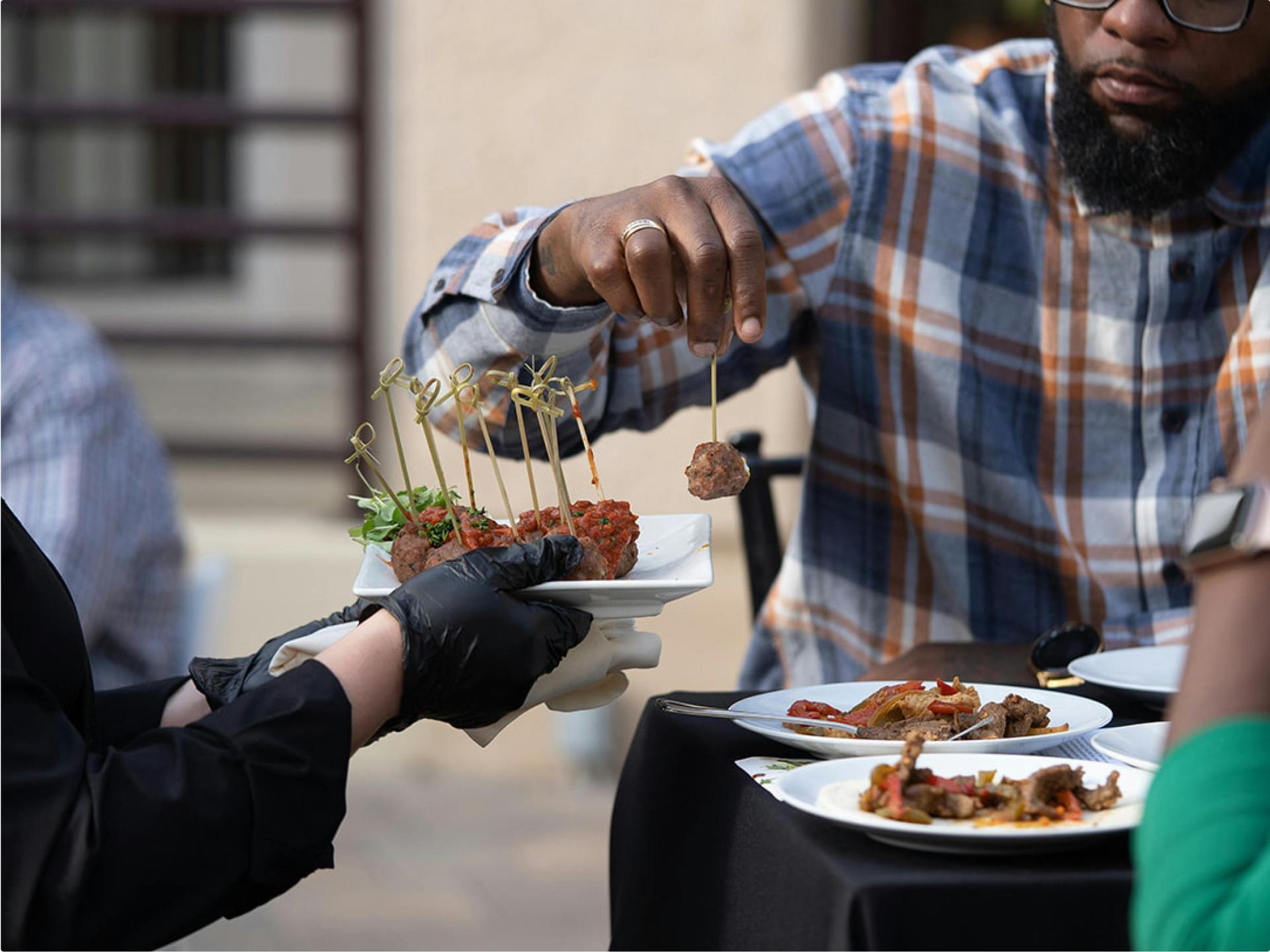 We know that food brings people together. That's why we've created menus with a variety of offerings to elevate your event experience. Our culinary team takes great care to prepare each dish to perfection and tailor it to meet the diverse tastes and dietary needs of your guests.